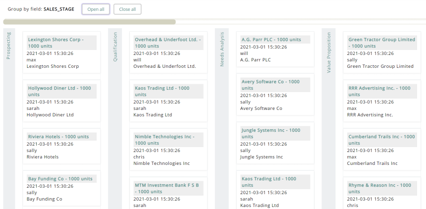 With KoolSuite you can activate the Kanban View for any module. KoolSuite prepares the choice of the column on which to group.